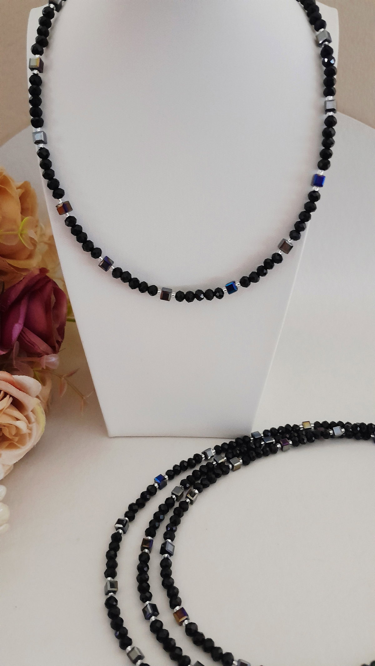 Collar de cristales y mostacilla calibrada importada, 40 cm de largo aproximadamente (más cadena de extensión de 5 cm), alargue y cierre de acero quirúrgico