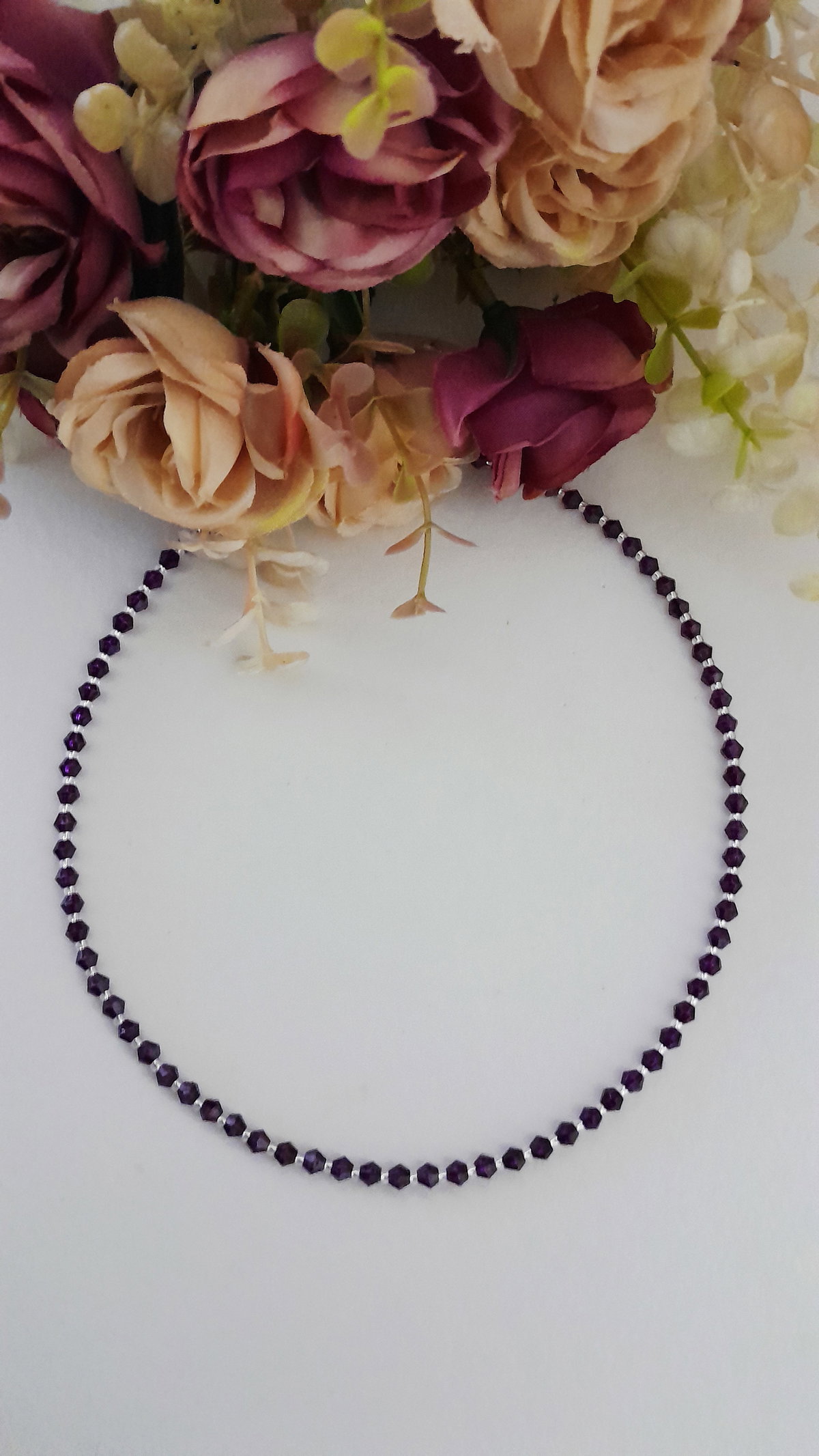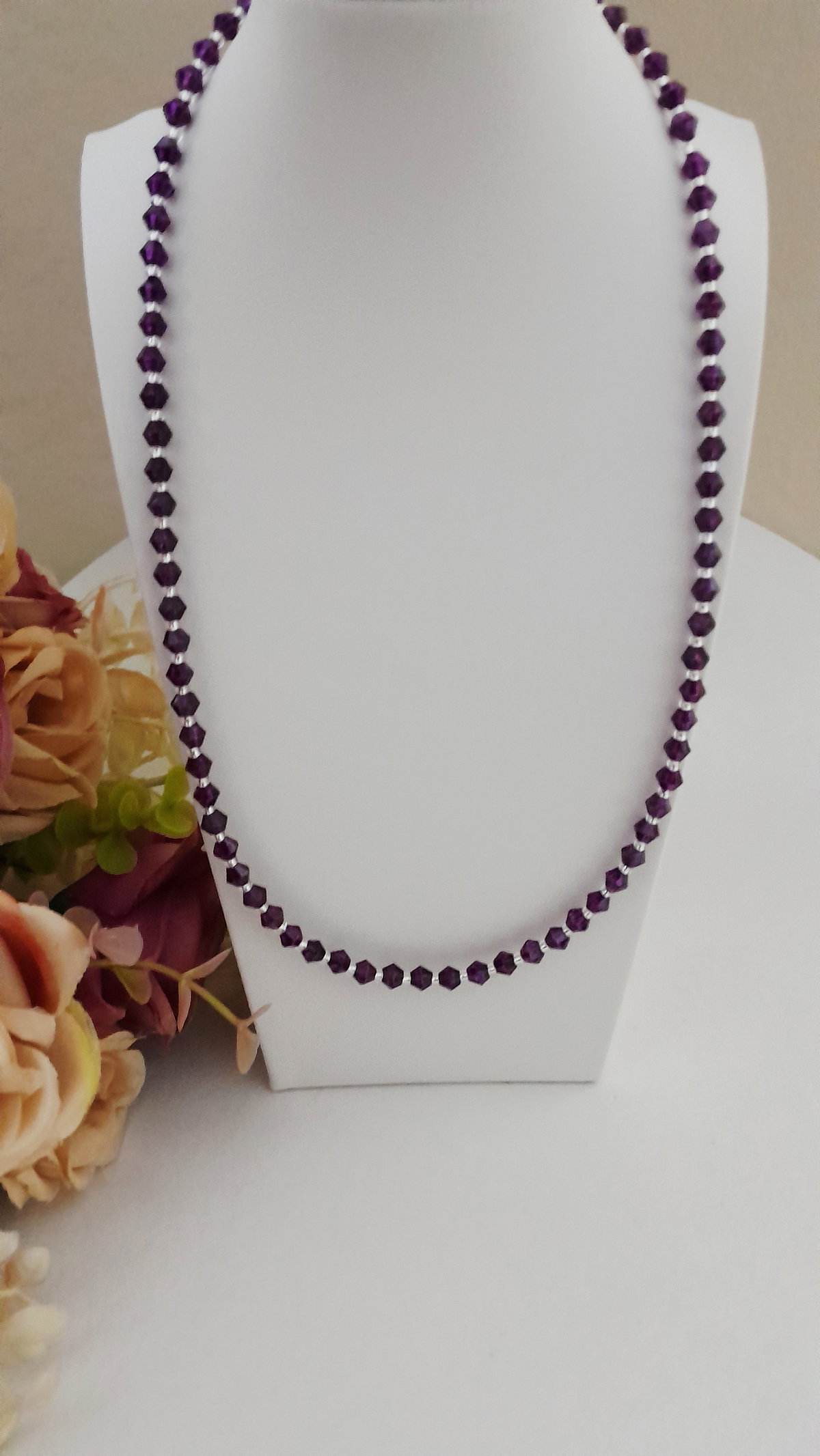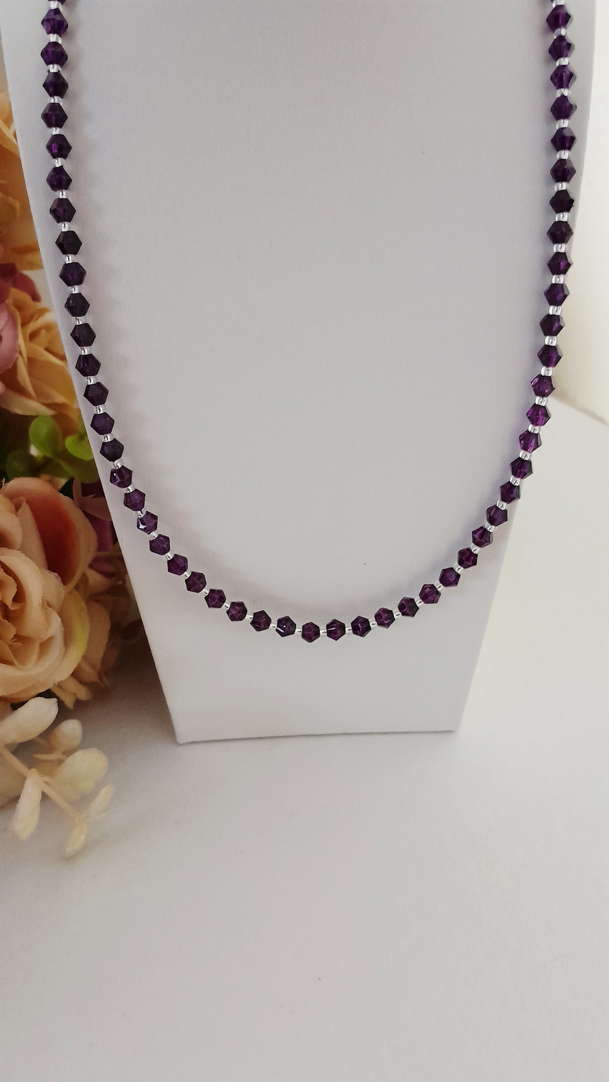 Collar de cristales y mostacilla calibrada importada, 40 cm de largo aproximadamente (más cadena de extensión de 5 cm), alargue y cierre de acero quirúrgico