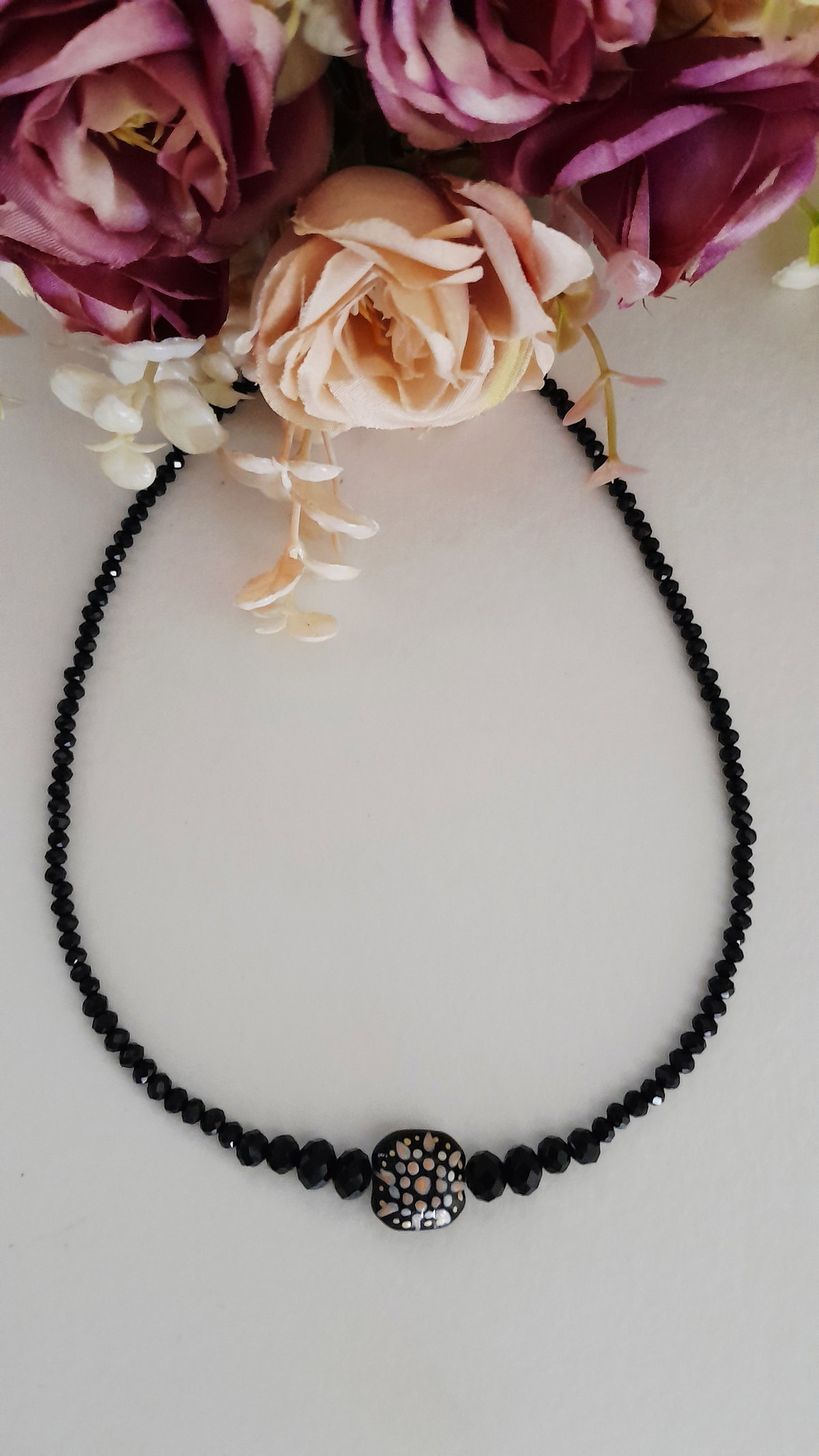 Collar de cristales de distintos tamaños y dije de cerámica (importado de la India)