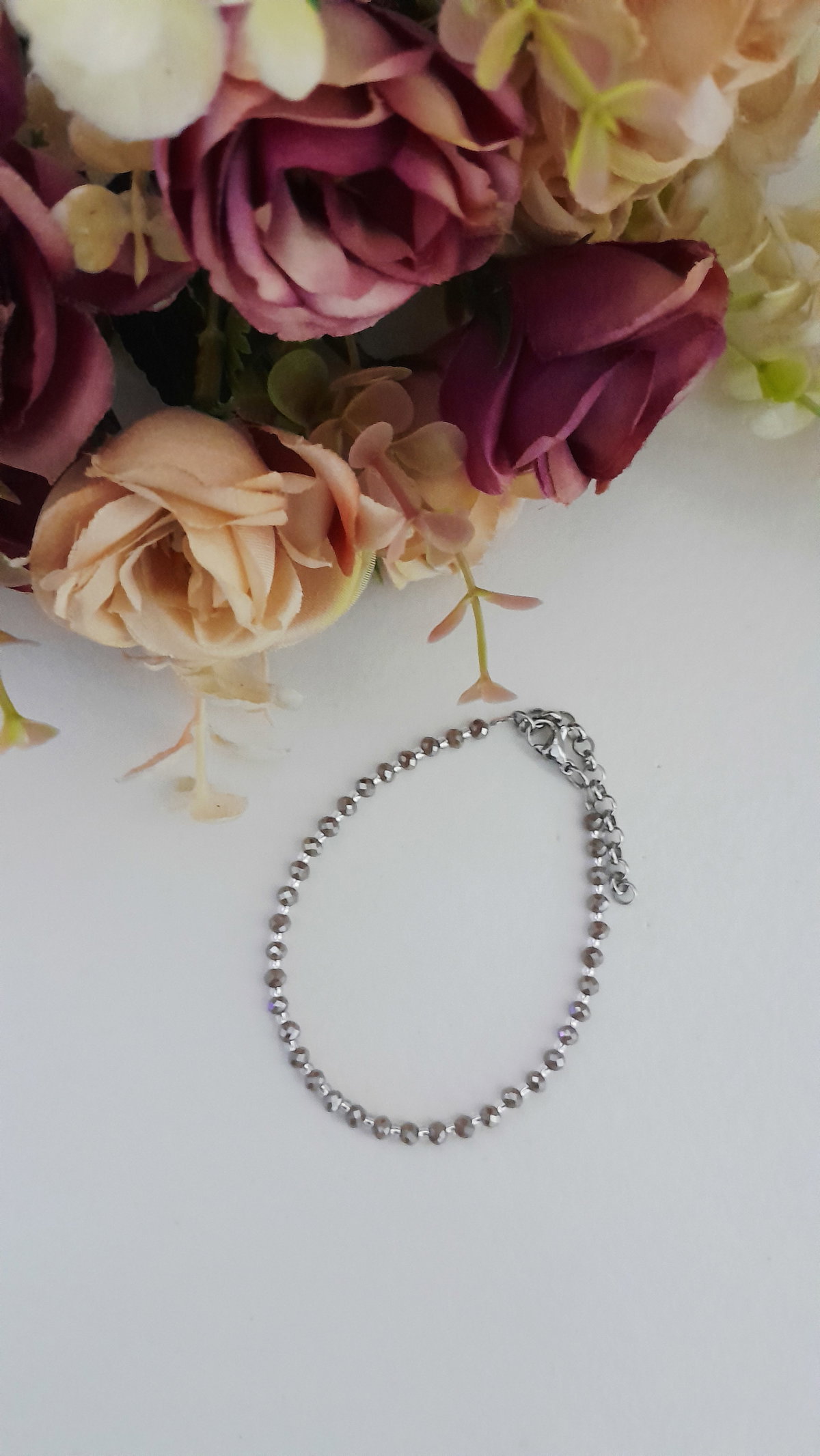 Pulseras de cristales y mostacilla calibrada importada, 18 cm de largo aproximadamente y cadena extensión de 5 cm, cierre y cadena de alargue de acero quirúrgico.